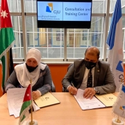 بحمد الله تعالى تم تجديد اتفاقية التعاون للعام ٢٠٢٠/٢٠٢١ مع مركز الاستشارات والتدريب في الجامعة الألمانية الأردنية حيث تم توقيع الاتفاقية من قبل الدكتور عمر شبيلات مدير المركز والسيدة سريا عياد رئيسة جمعية ابتكار ،كما سلم الدكتور شهادة ضمان الحودة للجمعية عن برامجها التدريبية المعتمدة .