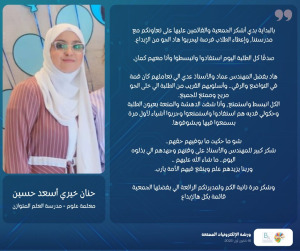A letter by teacher Hanan Khairy Asaad Hussein dedicated to the Ebtikar Association and the trainers.