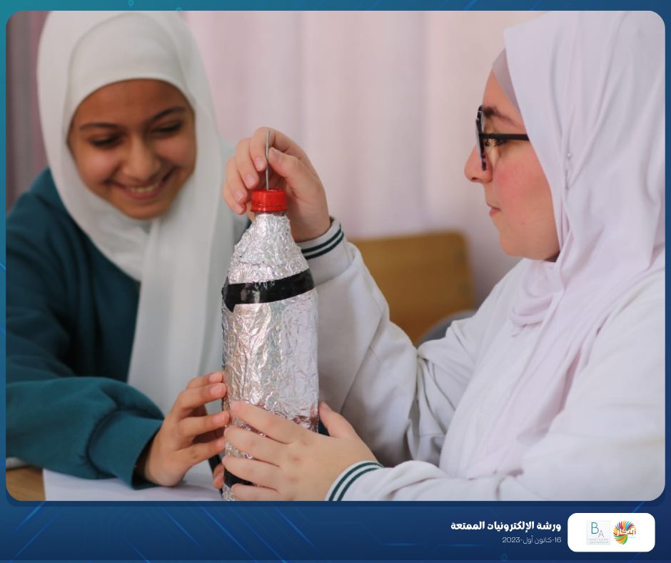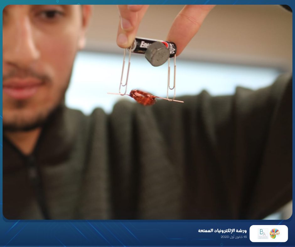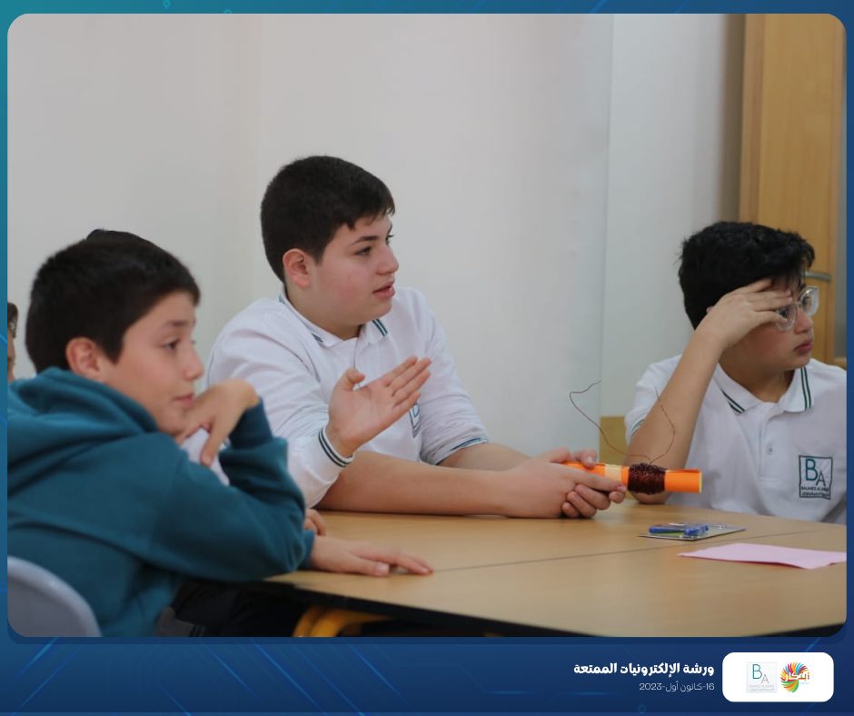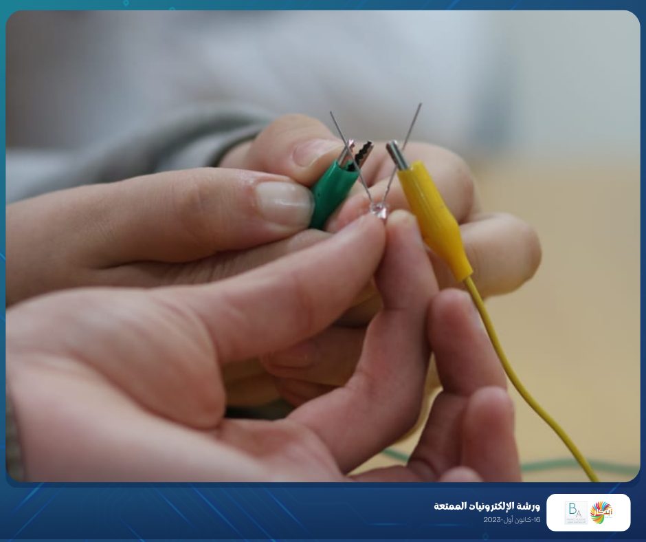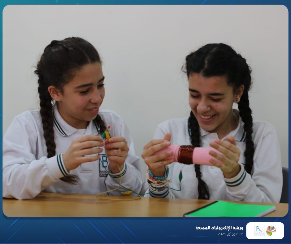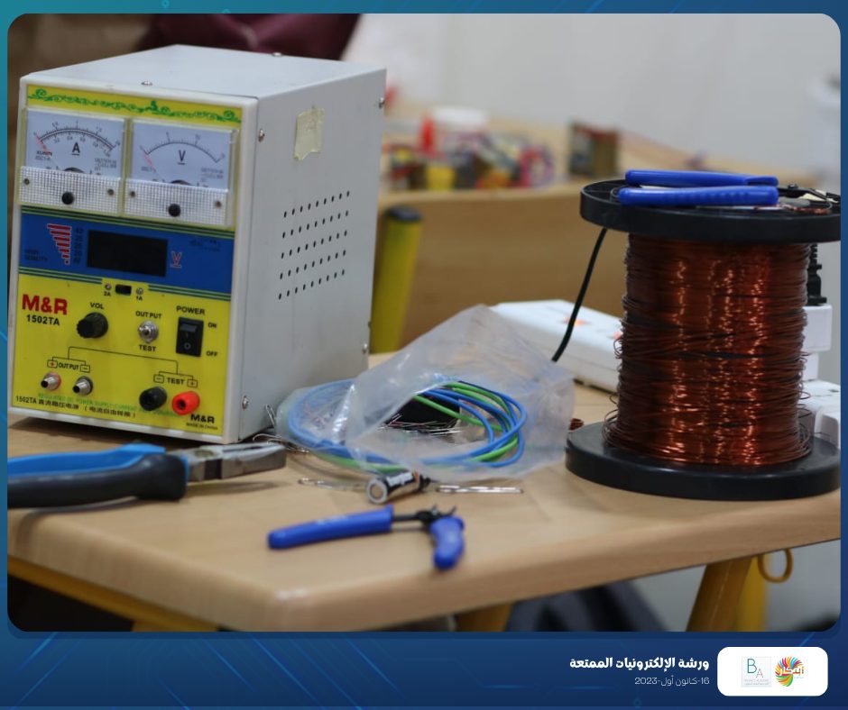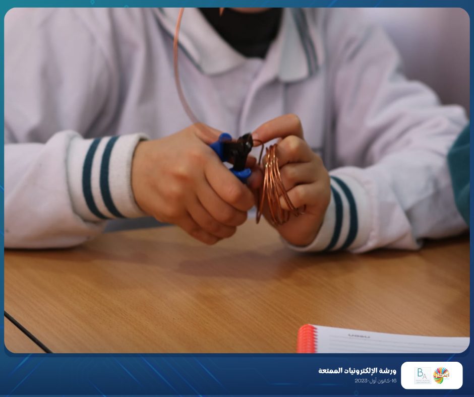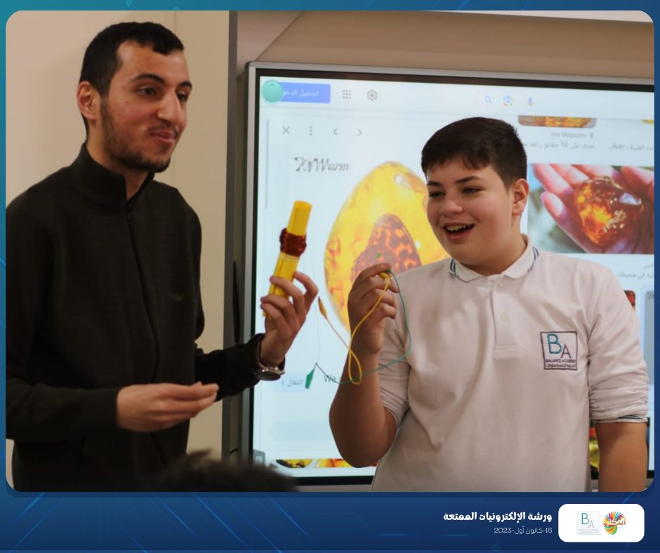 Part of the fun electronics workshop that was held on Saturday, December 16, 2023, in cooperation with Balance Academy – مدرسة و روضة العلم المتوازن