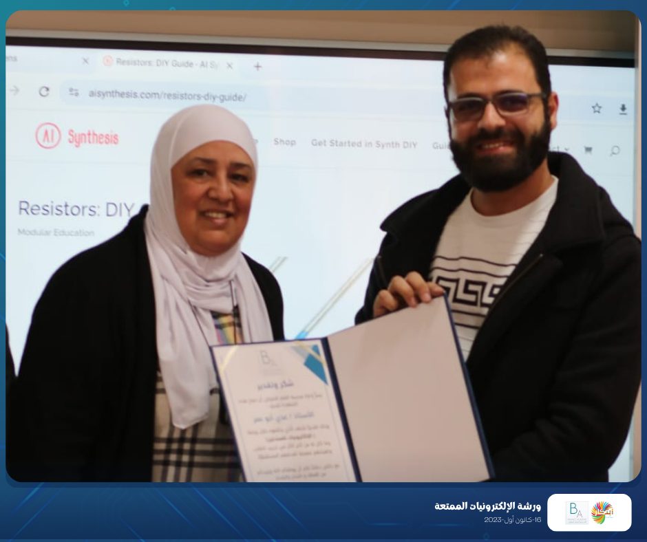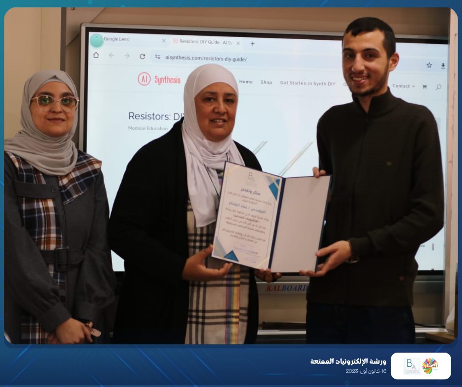 the participants learned about interesting and distinctive experiences in electronics with trainers Eng. Imad Al-Shaham and Teacher Oday Abu Omar.